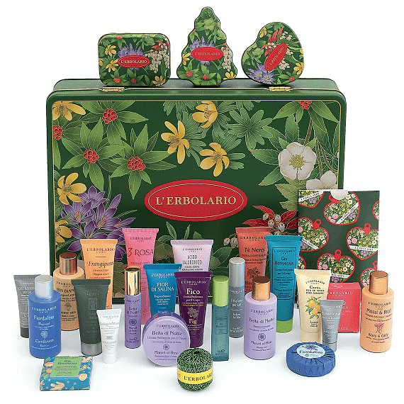 All'interno della meravigliosa box in latta decorata scoprirai 24 sorprese beauty scelte tra i migliori prodotti L'Erbolario, dalle novità ai best seller.