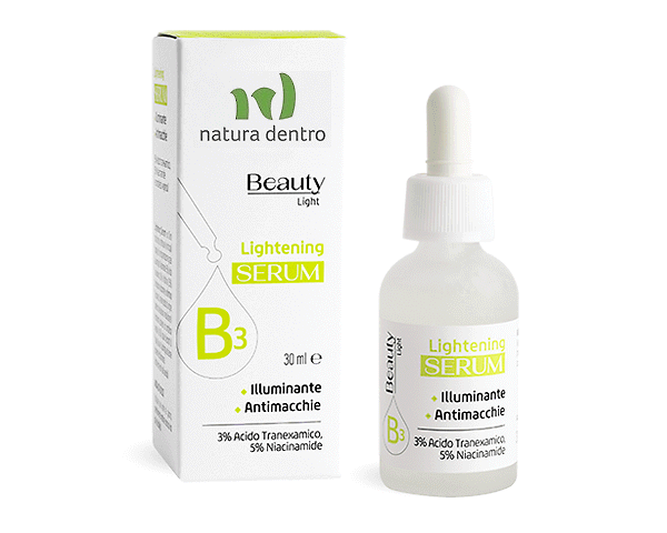 Lightening siero grazie al complesso vegetale dermawhite ha proprietà sbiancanti, grazie alla capacità di inibire la tirosina.